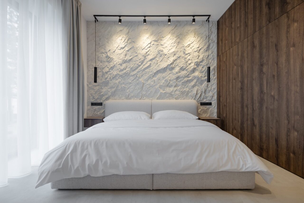 Unikátom a najvýraznejším prvkom je stena v spálni od slovenského umelca Jozefa Stančíka.