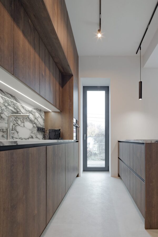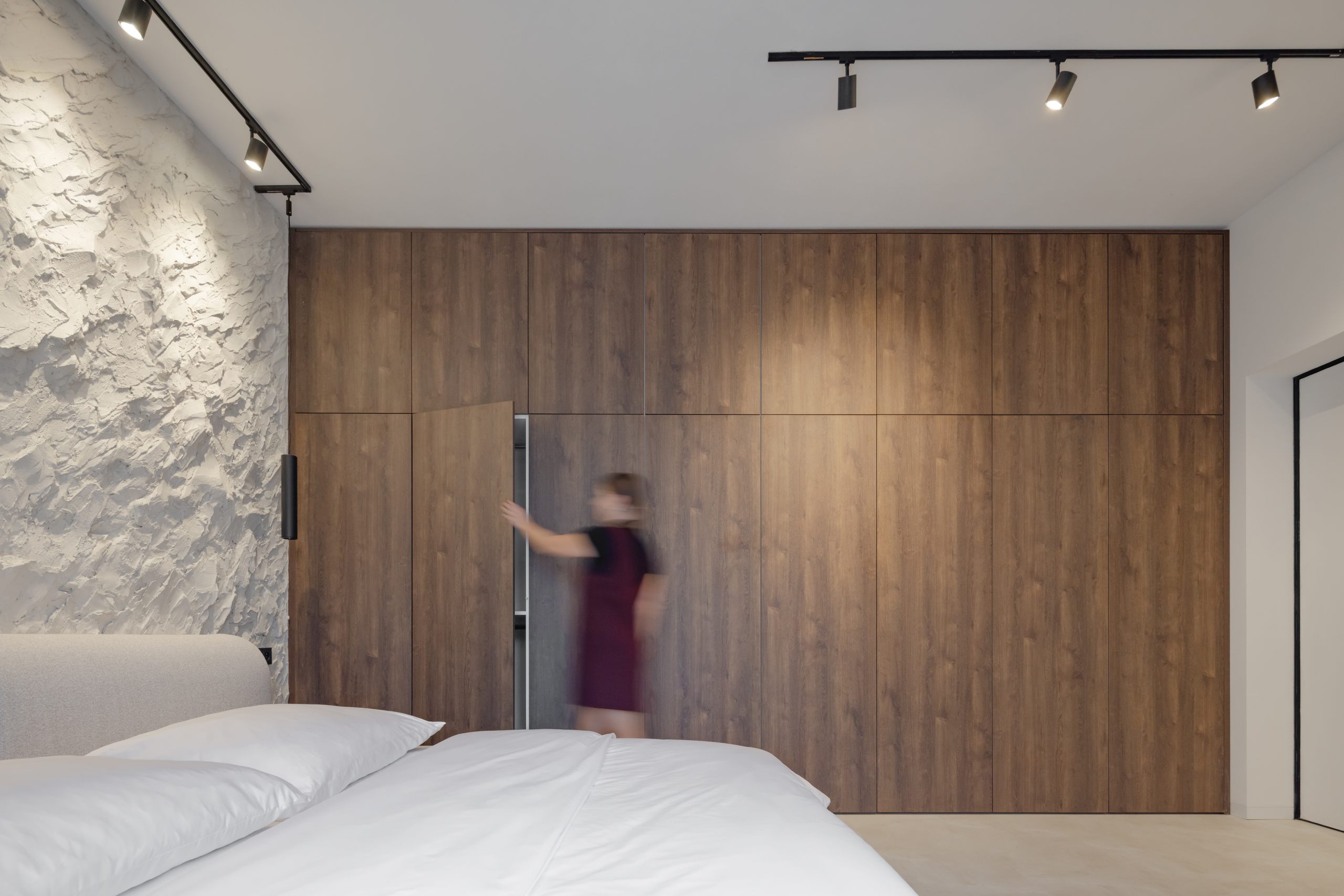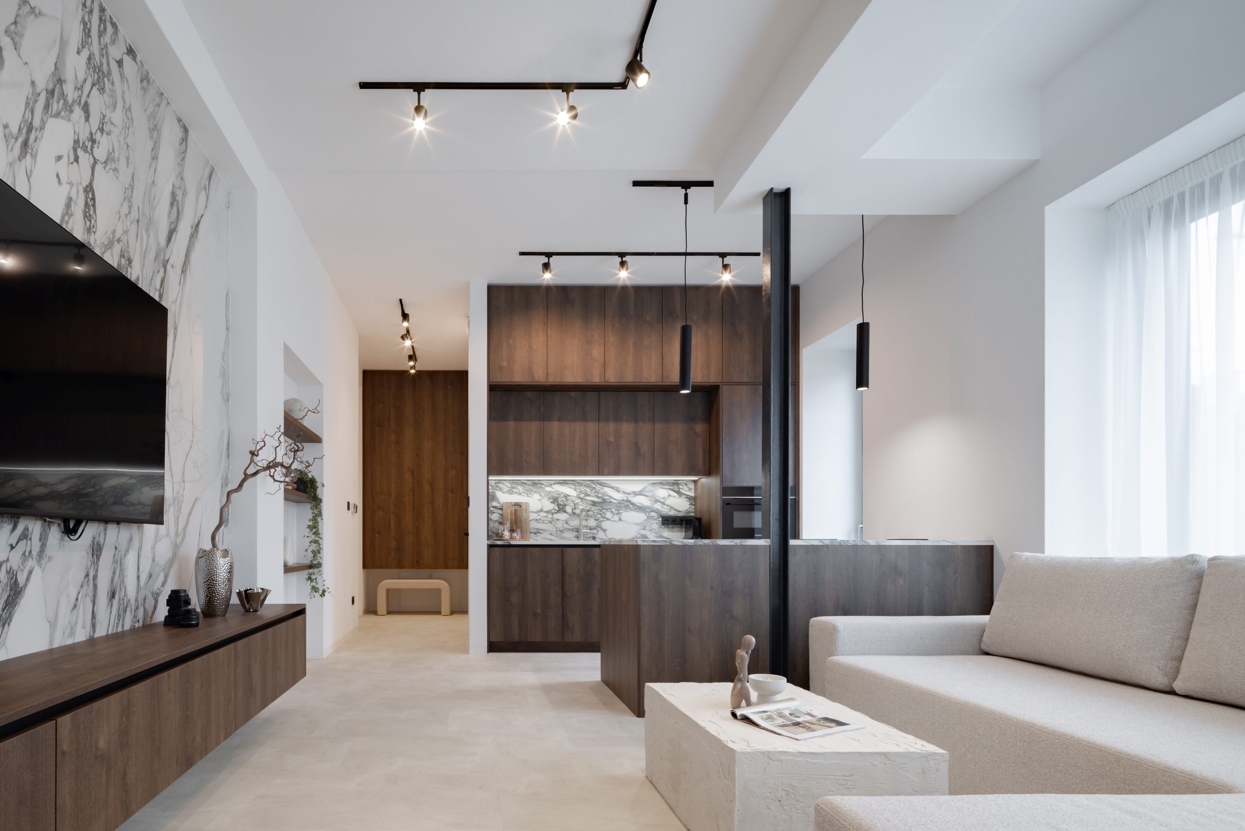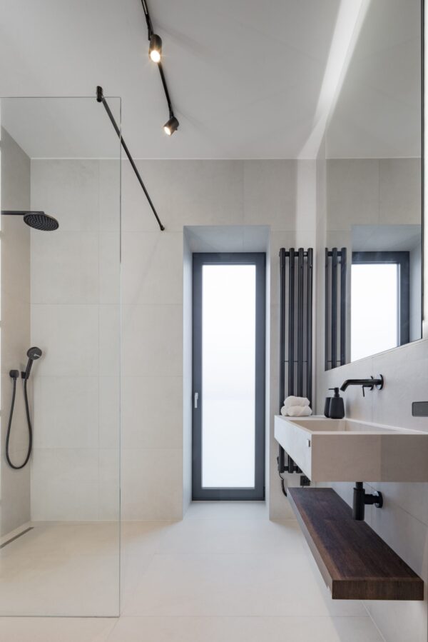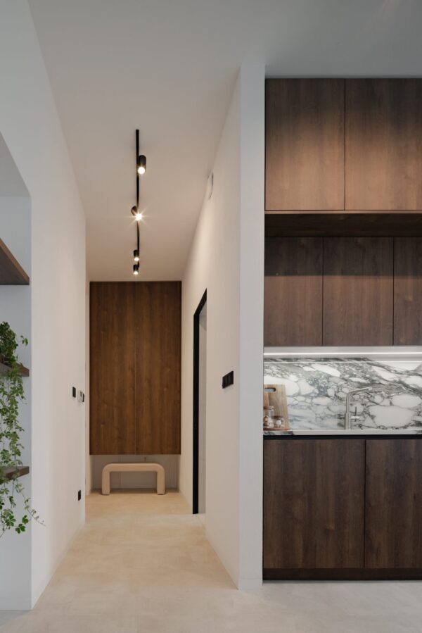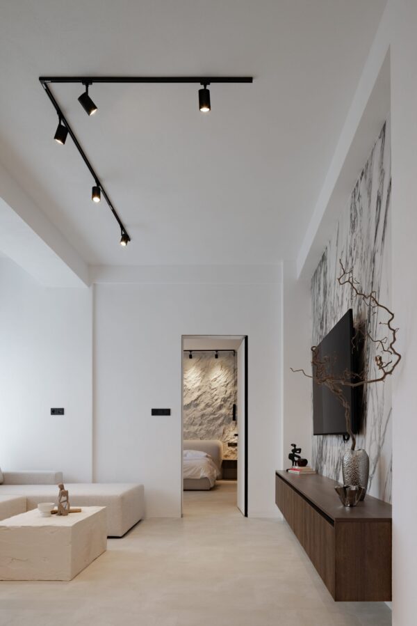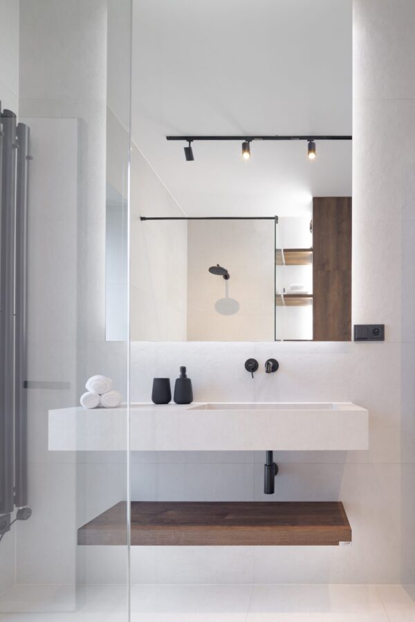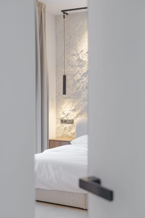 Zaujímavosťou apartmánu určeného na krátkodobý prenájom v Banskej Bystrici je je určite jeho kontrastné ladenie – všadeprítomná biela a tmavé prvky vytvárajú kontrast, vďaka ktorému sa toto miesto ľahko odlíši od akéhokoľvek iného AirBnB miesta.